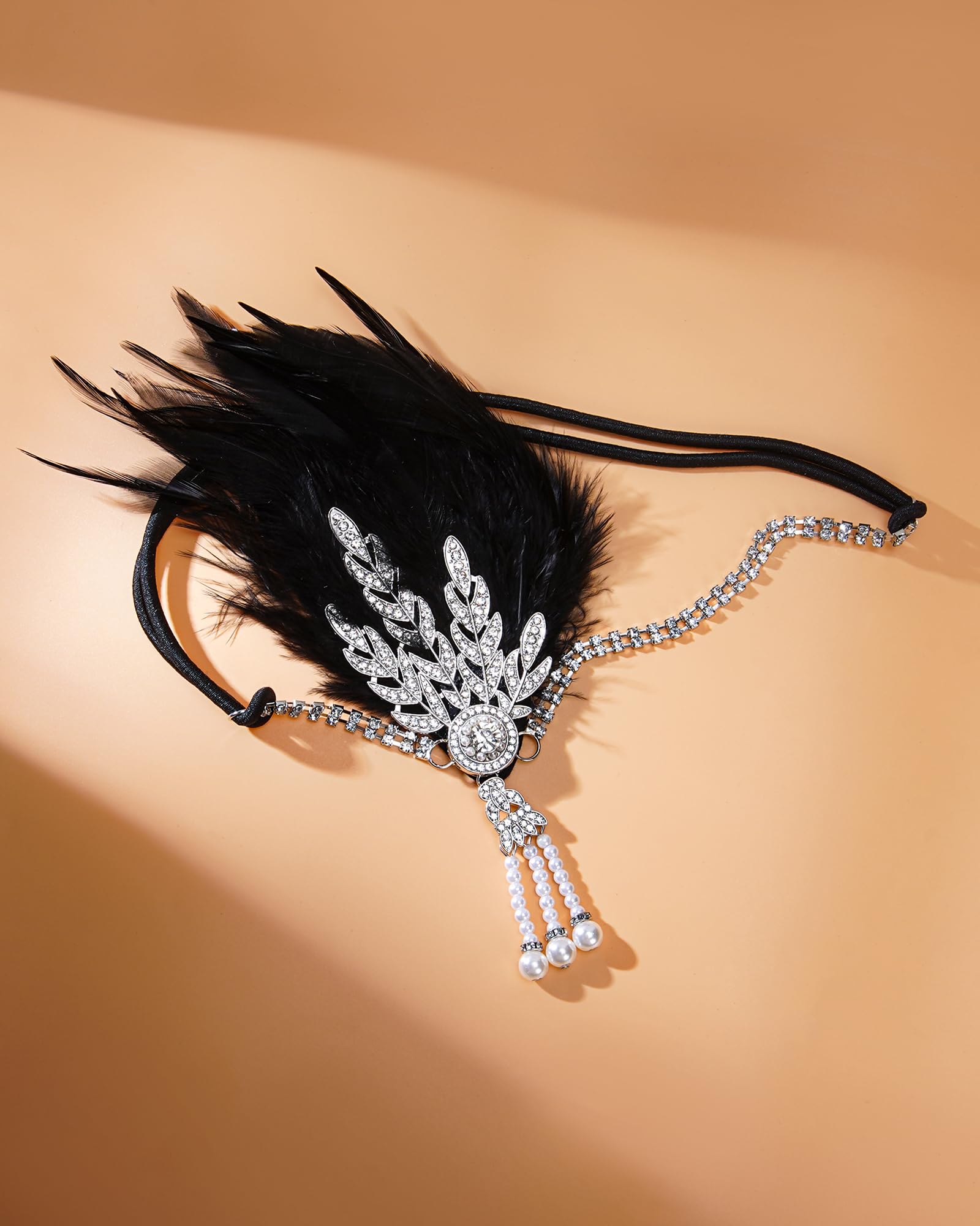 - Feather Flapper Headband: This elegant headdress features shimmering crystal rhinestones through soft feathers, perfect with your showgirl costume. Adjustable size with elastic band, very comfortable to wear and take off