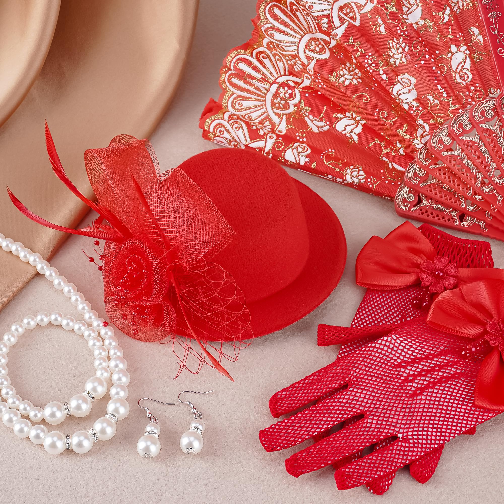 - Tea Party Set: You will get 1 fascinator hat, 1 pair of lace gloves, 1 lace fan, faux pearl bead necklace, faux pearl chain bracelet and pearl drop earrings, the set supports your use and decoration needs. Wear them at the summer beach trips, or wear them to formal events such as church events, weddings, cocktail parties, tea parties, etc